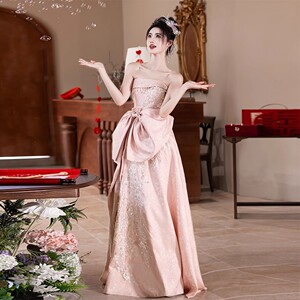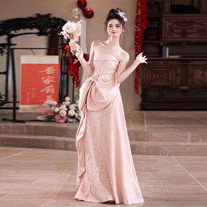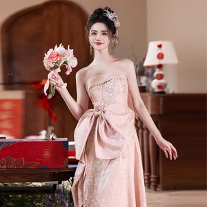 新中式订婚礼服裙绝美抹胸晨袍新娘2025新款粉色敬酒服气质回门宴
