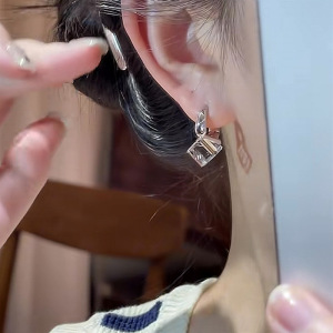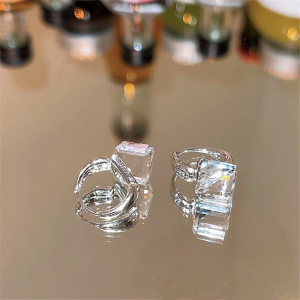925银针冷淡风几何水晶耳扣时尚简约日常通勤百搭韩系ins耳环女