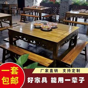 实木餐桌椅家用复古八仙桌仿古四方餐桌餐厅饭馆商用家用餐桌货源