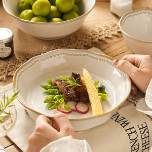 家用陶瓷餐具碗盘碗碟餐盘套装2025新款陶瓷复古清新日式餐具