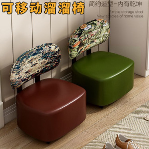 轻奢滑轮移动凳子小矮凳子家用结实耐用宝宝靠背椅高级感出租房用