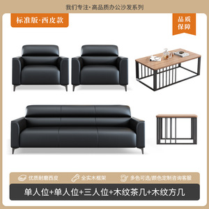 办公沙发现代简约会客接待三人位小户型办公室商务猫抓皮茶几组合