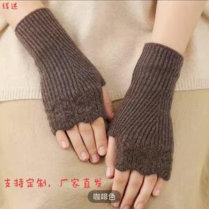 2025新款流行手套女半截露指半指手套学生写字毛线针织保暖手套