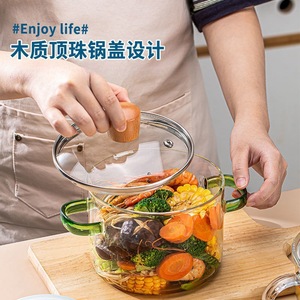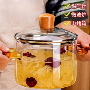 加厚耐高温透明玻璃双把锅家用可电陶炉煲汤炖煮锅带盖泡面锅