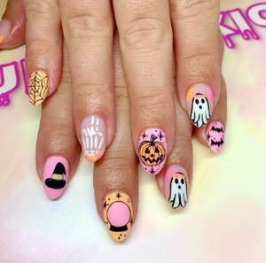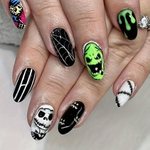 外贸热销款美甲片万圣节合集简约法式蝙蝠幽灵鬼脸短款穿戴甲批发