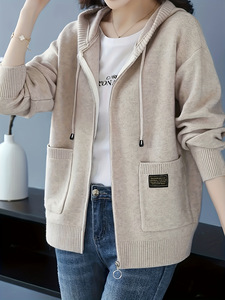 高级感连帽毛衣外套女宽松拉链针织开衫秋季女装带帽卫衣春秋外搭