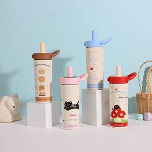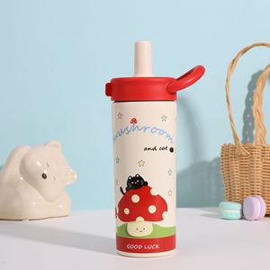 新款高颜值316不锈钢保温杯男女学生便携吸管杯可爱卡通手提水杯