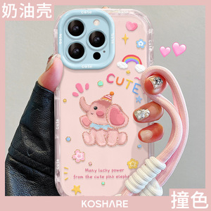 油画大象挂绳适用苹果16e果冻手机壳14promax可爱女生15韩系甜美
