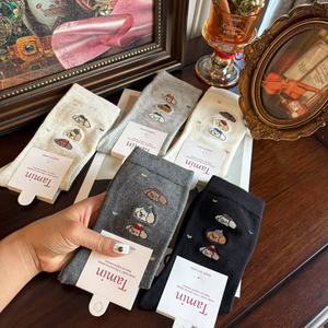 简约韩版学院风百搭韩系刺绣小狗可爱棉中筒袜