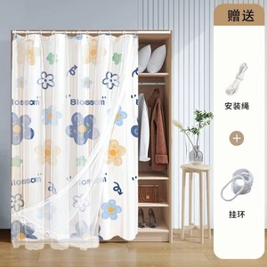 柜子遮挡帘免打孔安装衣柜鞋柜厨房门帘窗帘子置物架遮丑防尘布帘