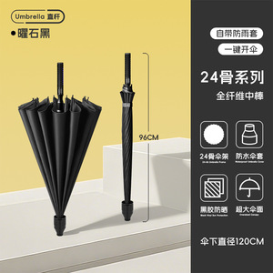120CM雨伞大伞24骨【直柄-收伞不湿】加大加厚加固-曜石黑