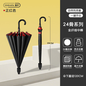 120CM雨伞大伞24骨【直柄-收伞不湿】加大加厚加固-正红色