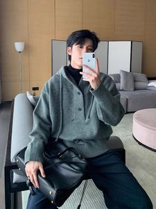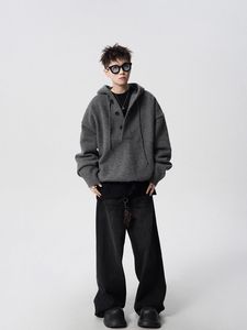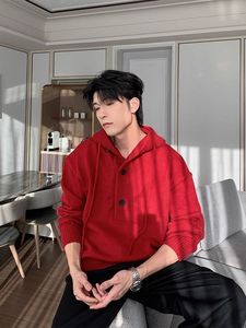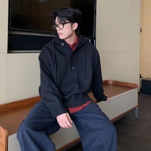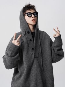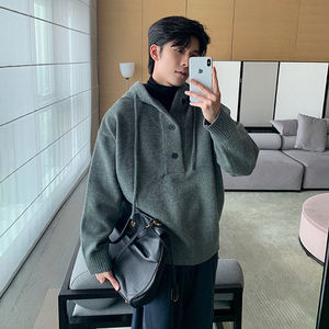 秋冬季超好看连帽毛衣男半高套头针织衫男潮牌情侣套头连帽上衣男
