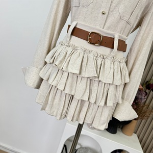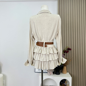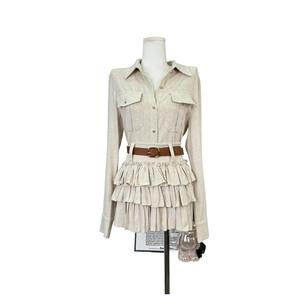 松弛holiday法式松弛感亚麻正肩衬衫上衣蛋糕裙两件套