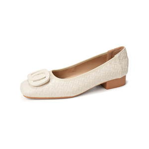 威威女郎 9035-1法式浅口单鞋女粗跟配裙子方头一脚蹬编织奶奶鞋