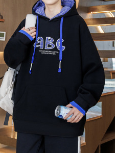 春秋季潮牌卫衣男孩初中高中学生连帽外套青少年帅气大童男装上衣