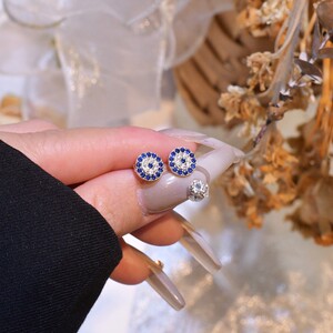 跨境纯银针恶魔之眼耳钉女耳窝钉简约mini迷你闪钻耳骨钉睡觉免摘