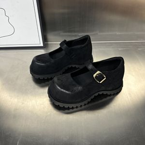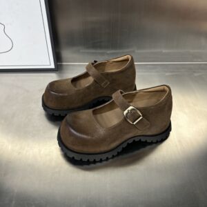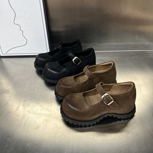 复古风磨砂牛皮勃肯鞋女2025春厚底内增高英伦风系带单鞋休闲鞋