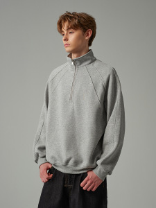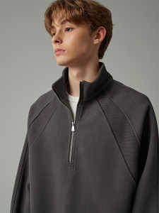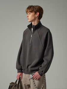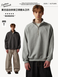 CATTEE美式半拉链设计感卫衣男女秋季宽松cleanfit百搭立领外套潮