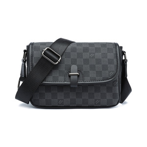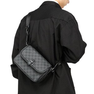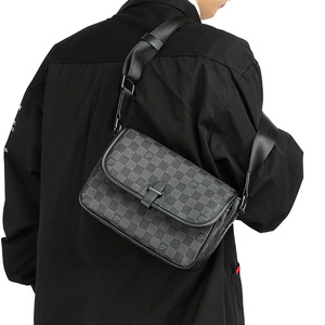 2025新款时尚格纹休闲小方包男士简约批皮质单肩斜挎小包包百搭批