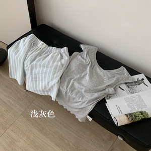 带胸垫睡衣女背心短裤套装夏季棉感莫代尔可外穿休闲简约女士套装