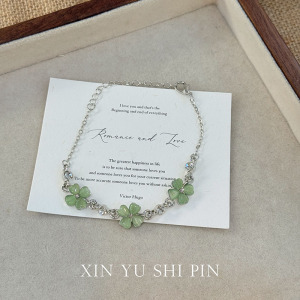 韩系小清新绿色四叶草手链简约精致高级感时尚百搭耳钉森系手饰女