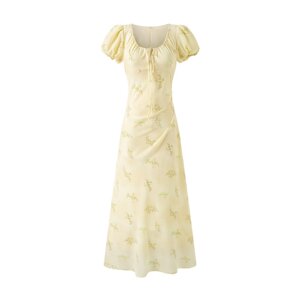 2025夏季新款法式浪漫小清新碎花抽绳设计感显瘦长款连衣裙U领