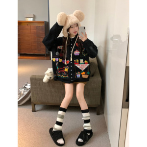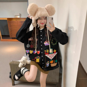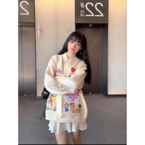 重工刺绣针织开衫外套女2025新款春季高级感日系慵懒复古毛衣上衣