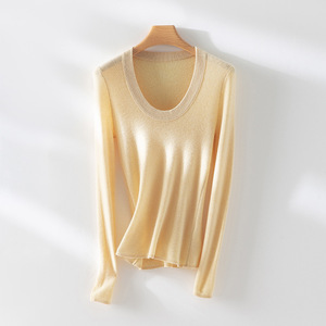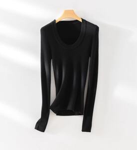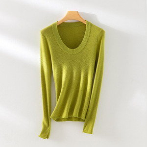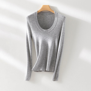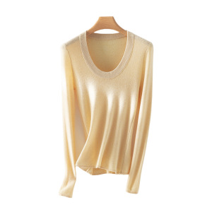 爆款全羊毛针织衫2025早秋女装长袖U领气质打底衫修身显瘦上衣女