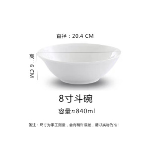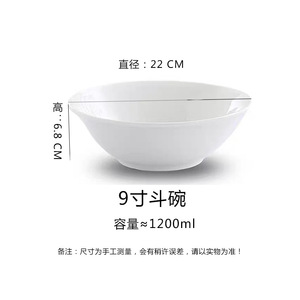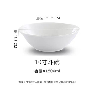 纯白陶瓷斗笠碗翅碗沙拉碗米饭碗盛菜大碗汤盆面粉碗餐具批发