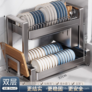 推荐款 双层【特粗款陨石灰】57cm+【内置】刀架筷筒+砧板架