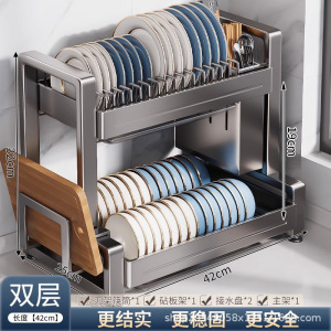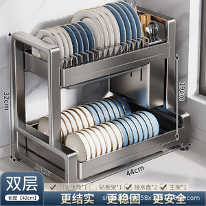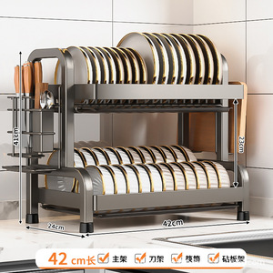 双层【陨石灰】42cm+筷筒刀架+砧板架