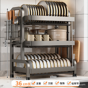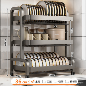 三层【陨石灰】36cm+筷筒刀架+砧板架