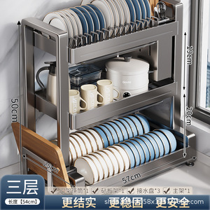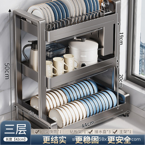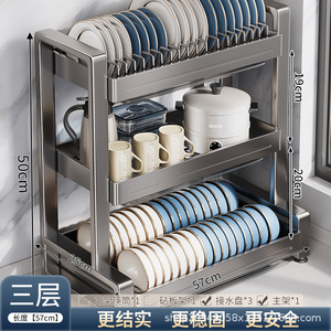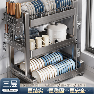 厨房多功能置物架不锈钢碗碟收纳架家用沥水碗架放碗盘碗筷收纳盒