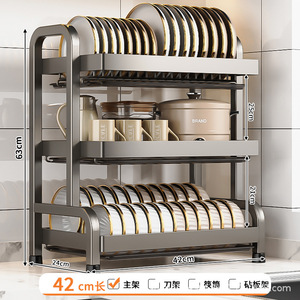 三层【陨石灰】42cm+筷筒刀架+砧板架