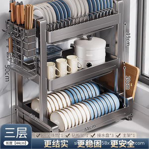 三层【特粗款陨石灰】44cm+【外置】刀架筷筒+砧板架