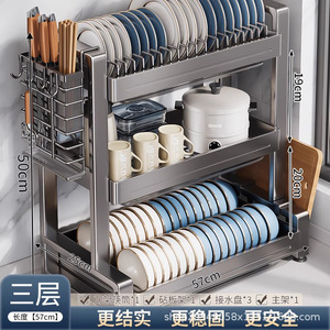 推荐款 三层【特粗款陨石灰】57cm+【内置】刀架筷筒+砧板架