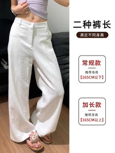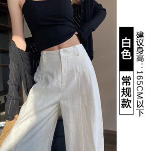 藏青色亚麻苎麻阔腿裤女夏季薄高腰垂感老钱风直筒西装棉麻休闲裤