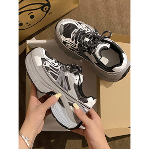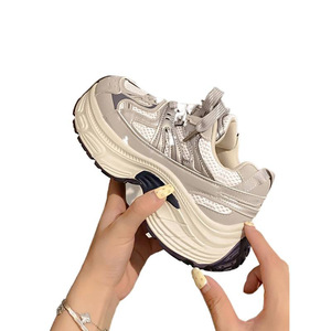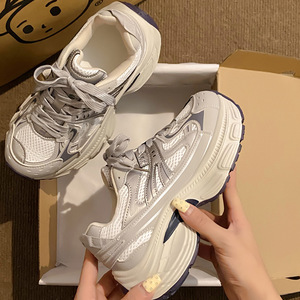 欧洲站2025秋季新款厚底老爹鞋女透气增高网面炸街6CM巴黎运动鞋