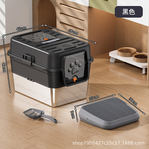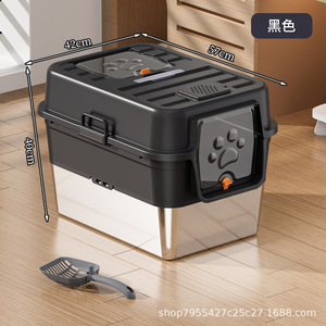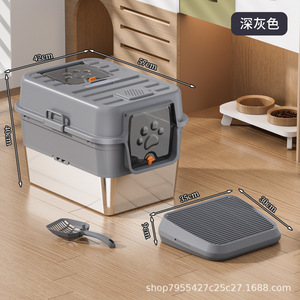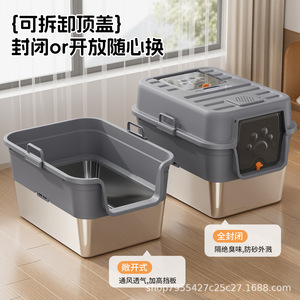 不锈钢猫砂盆全半封闭式超大号隔臭不粘底猫沙盆加高手提式猫厕所