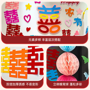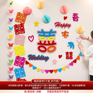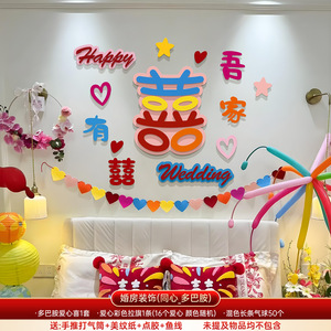 多巴胺婚房布置套装女方卧室床头背景墙拉花装饰结婚专用喜字贴纸