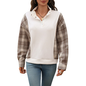 欧货外贸2025新款跨境休闲复古风半开领格子拼接设计感宽松卫衣