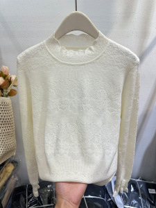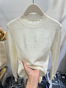法式半高领提花蕾丝毛衣针织打底衫女内搭小香风温柔洋气气质上衣