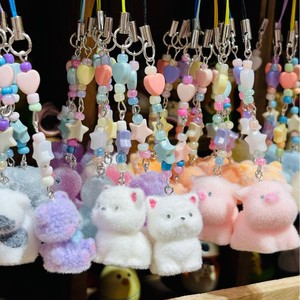 树脂植绒可爱仿真小动物钥匙扣diy手机链包包挂饰挂件娃娃机礼品