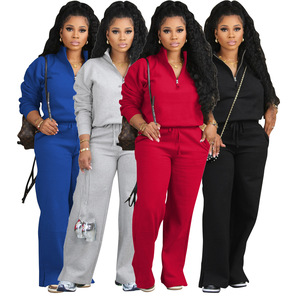 AL258 亚马逊跨境欧美女装卫衣两件套装加绒加厚运动服宽松大码冬