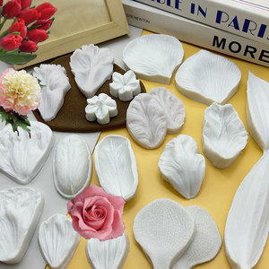 翻糖模具各种玫瑰郁金香花瓣叶子糖花硅胶双片夹模立体纹路模多款