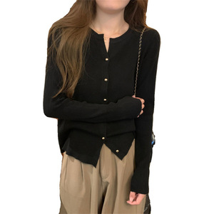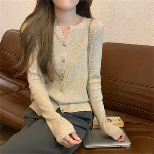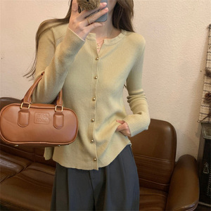 KANING韩系剪刀领薄款针织开衫2025秋季新款长袖针织打底衫毛衣女