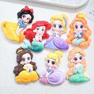 大号卡通小公主7款亮面人物树脂配件diy奶油胶手机壳发夹材料批发