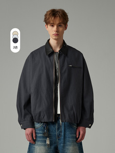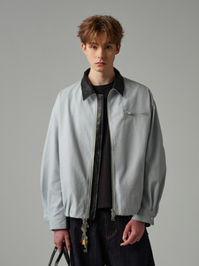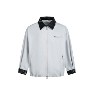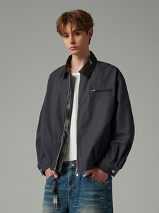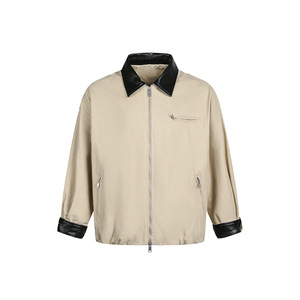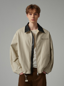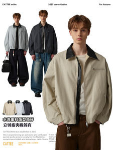 CATTEE美式复古pu皮拼接底特律夹克男女cleanfit帆布水洗工装外套