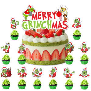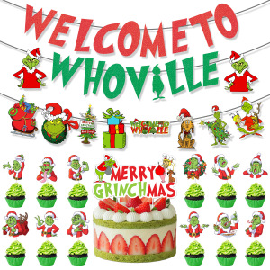 2025跨境圣诞节格林奇主题装饰字母拉旗螺旋蛋糕插排套装批发定制
